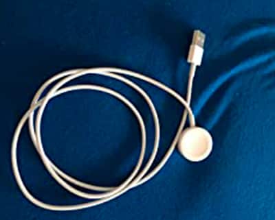 En la caja de nuestro Apple Watch 3 podemos encontrar a primera vista el dispositivo reloj, con una o dos correas intercambiables dependiendo del paquete que decidimos adquirir. Además de ello, viene el cable adpatador USB, el conocido cargador magnético inalámbrico y una guía rápida de instrucciones.